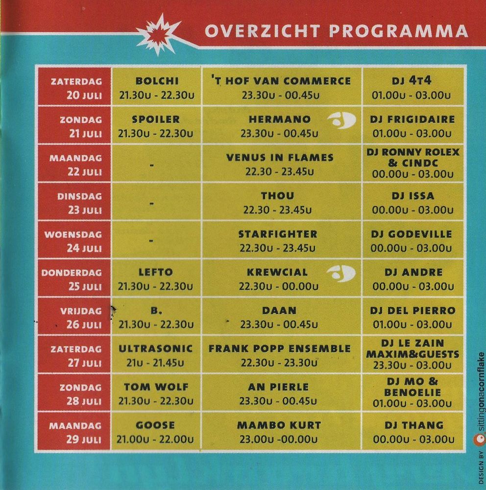 De overwegend Belgisch gekleurde affiches worden van het prille begin aangevuld met buitenlandse bands. Een trend die naarmate de jaren vorderen een lichte uitbreiding zal nemen, doch met een blijvende focus op lokale producten.